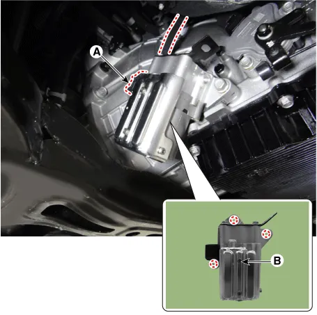 Disconnect the EOP connector (A) and remove the EOP (B) by loosening the bolts.