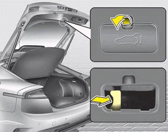 Your vehicle is equipped with the emergency liftgate safety release lever located on the bottom of the liftgate. When someone is inadvertently locked in the luggage compartment, the liftgate can be opened by doing as follows: