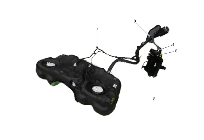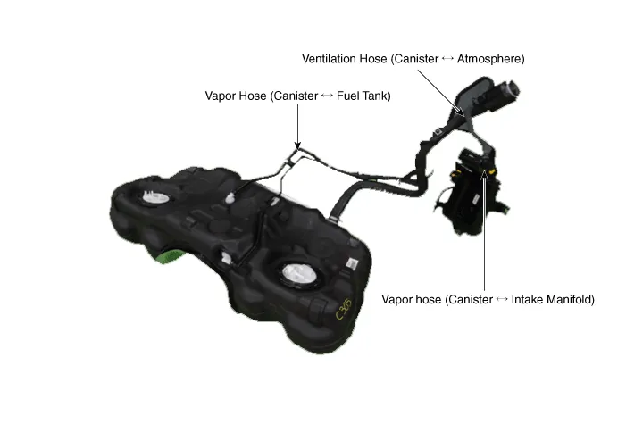 6. Vapor hose (Canister ↔ Intake Manifold) 7. Vapor Hose (Canister ↔ Fuel Tank) 8. Ventilation Hose (Canister ↔ Atmosphere) |