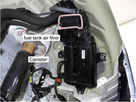 2. Canister 4. Fuel tank air filter |
