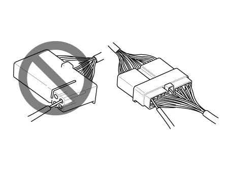 When a tester is used to check for continuity, or to measure voltage, always insert tester probe from wire harness side.