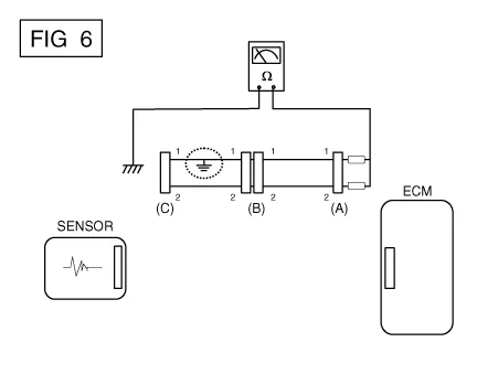 Disconnect connectors (A) and (C), and measure the resistance between connector (A) and Chassis Ground as shown in [FIG. 6].
