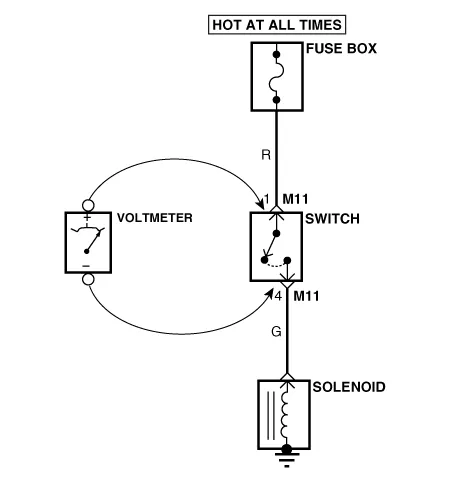 Connect the positive lead of a voltmeter to the end of the wire (or to the side of the connector or switch) closest to the battery.