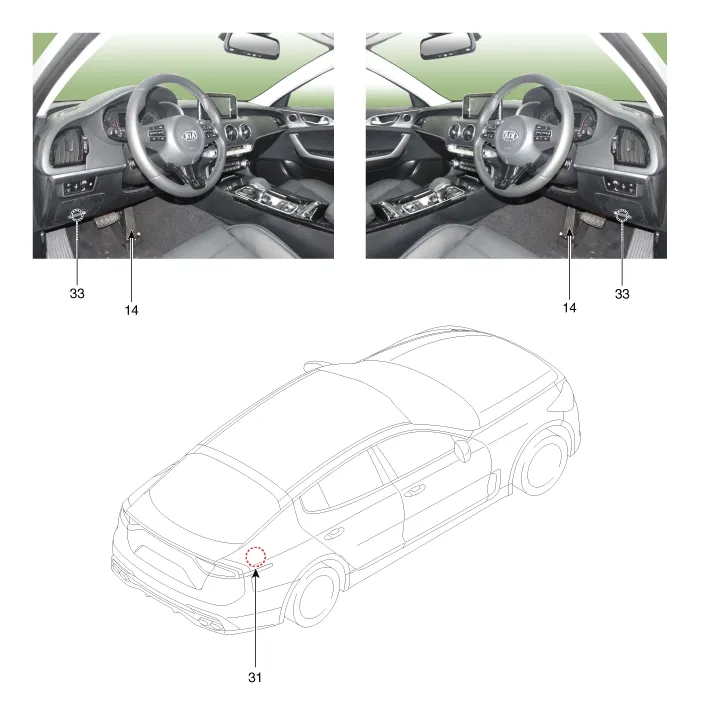 Repair procedures Inspection Diagnosis With KDS 1. The body electrical system can be quickly diagnosed for failed parts by using vehicle diagnostic system (KDS). The diagnostic system (KDS) provides the following information. (1) Self diagnosis : Checks and displays the failure code (DTC) (2) Current data : Checks the system input/output data state (3) Actuation test : Checks the system operating condition (4) Additional function : Other controls such as the system option and zero point 2.