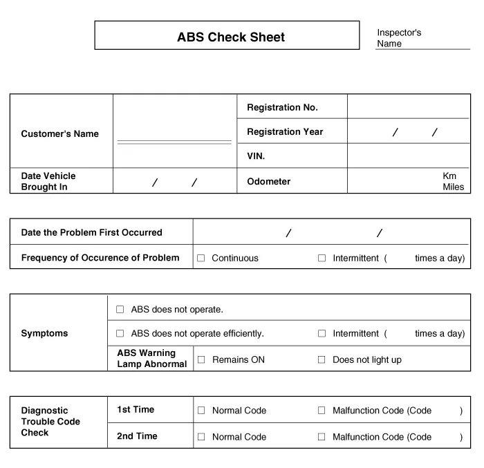 When current flows in the HECU the ABS warning lamp turns from ON to OFF as the initial check. Therefore if the lamp does not light up, the cause may be an open in the lamp power supply circuit, a blown bulb, an open in the both circuits between the ABS warning lamp and the HECU, and the faulty HECU. |