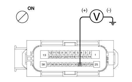 Turn the ignition switch ON, measure the voltage between terminal 29 of the ESP control module harness side connector and body ground.