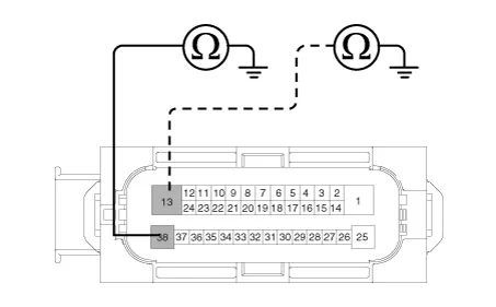 Disconnect the instrument cluster connector (M08) and turn the ignition switch ON. |