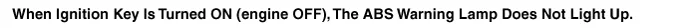 When ignition key is turned ON (engine OFF), the ABS warning lamp does not light up. |