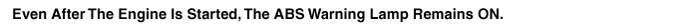 Even after the engine is started, the ABS warning lamp remains ON. |
