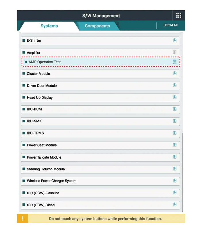Select the 'Car model' and the system to be checked in order to check the vehicle with the tester. |