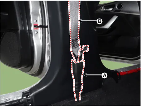 Remove the seat belt (B) from the EFD system by using the SST (0K888-D4200).