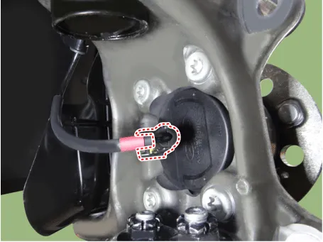 Loosen the wheel speed sensor bolt (A) and then disconnect the wheel speed sensor.
