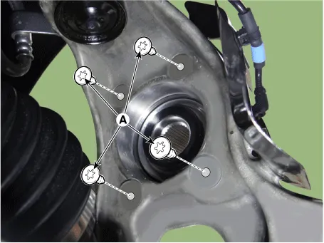 Loosen the hub assembly bolts (A) and then remove the hub assembly.