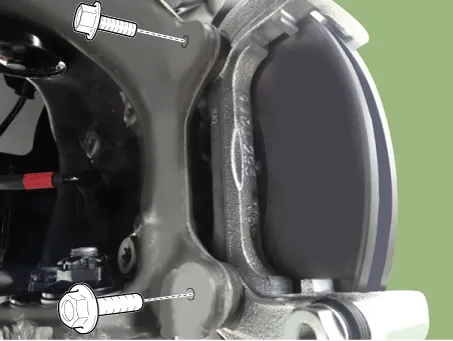 Loosen the brake member assembly bolts and then remove the brake member assembly.