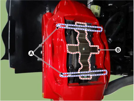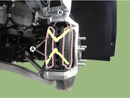 Check the pad wear. Measure the pad thickness and replace it, if it is less than the specified value.