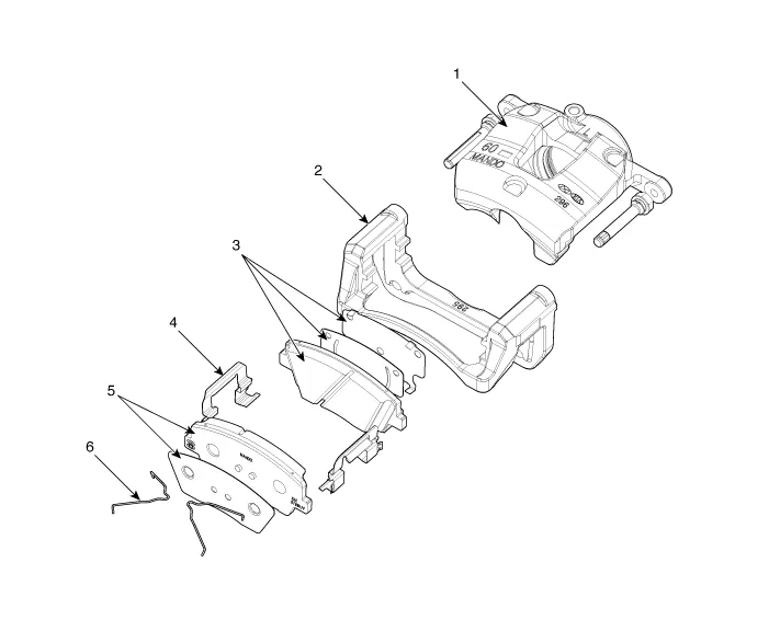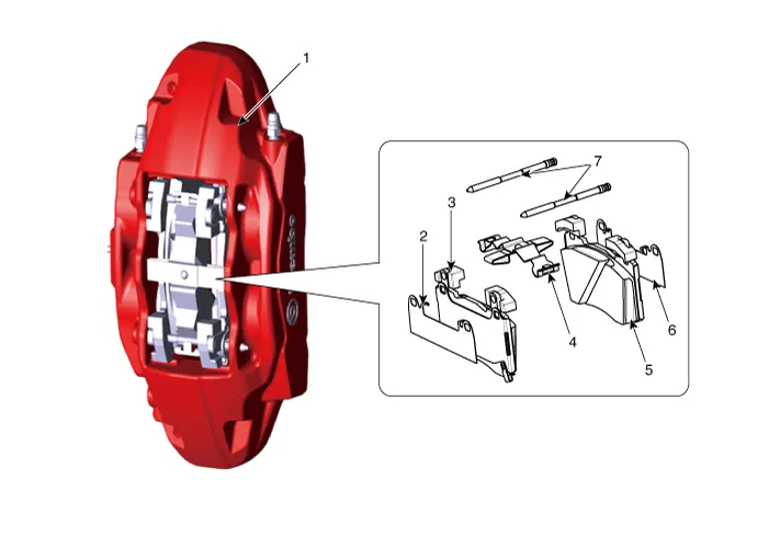 | 1. Caliper housing 2. Brake member 3. Brake pad assembly [IN] |