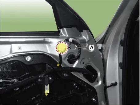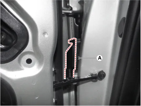 Remove the front door outside handle (A) by sliding it rearward.