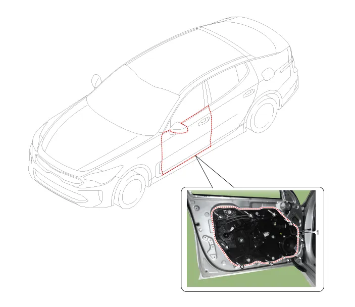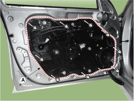Remove the front door window glass. (Refer to Front Door - "Front Door Window Glass") |