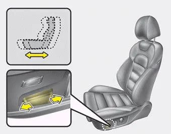The front seat can be adjusted by using the control switches located on the outside of the seat cushion. Before driving, adjust the seat to the proper position so you can easily control the steering wheel, pedals and switches on the instrument panel.
