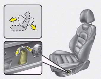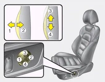 1. Turn the adjustment switch clockwise, the right/left seatback bolsters will be adjusted inward. Turn the switch counterclockwise, the seatback bolster will be adjusted outward.