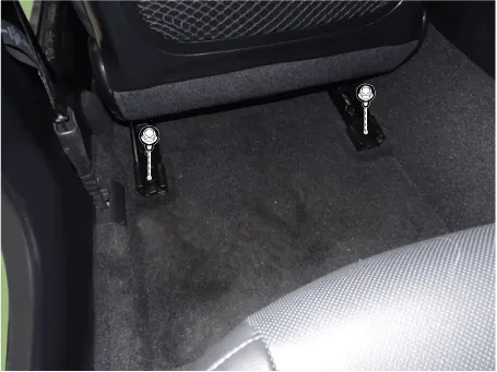 Be careful as the seat back may touch peripheral components such as the sunvisor if it is folded forward with its headrest and seat adjusted high and the seat moved forward. |