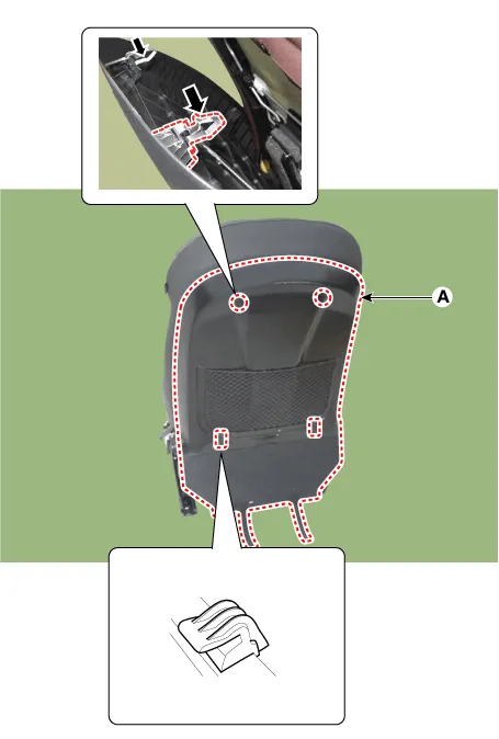 Remove the front seat shield inner cover (A) after loosening the mounting screw.