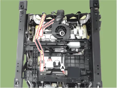 Remove the front seat air ventilation duct (A) after loosening the mounting screw.