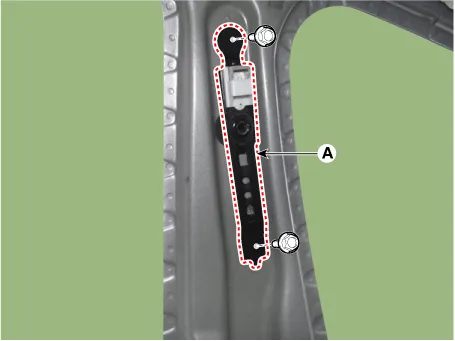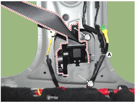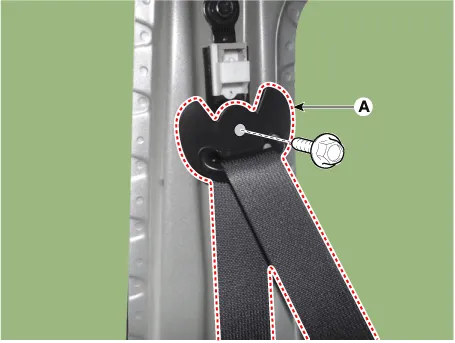 Remove the front seat belt retrator (A) after loosening the mounting bolt.
