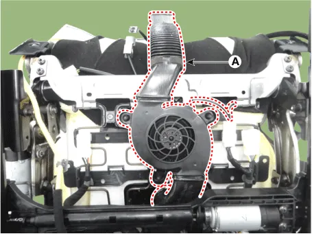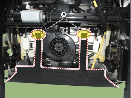 Remove the front seat blower motor (A).