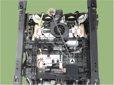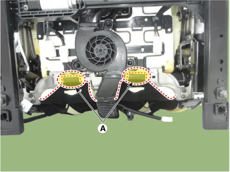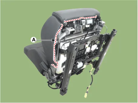 Remove the front seat cushion cover (A) from the front seat cushion frame.