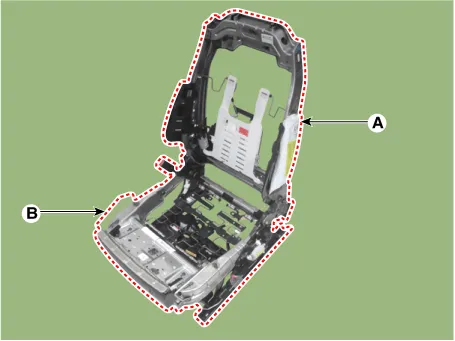 After loosening the mounting bolts, disconnect the front seat back frame assembly (A) and front seat cushion frame assembly (B).