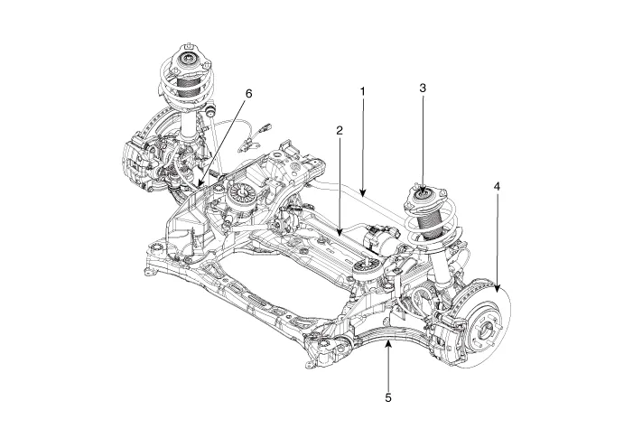 | 1. Front stabilizer bar 2. Steering gear box 3. Front strut assembly |