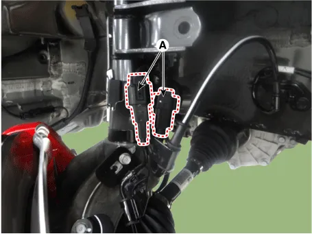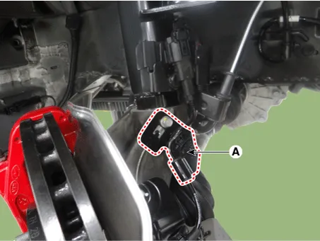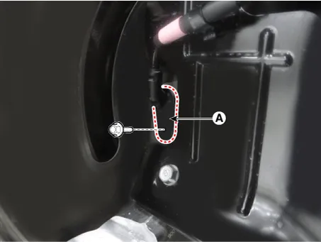 Loosen the wheel speed sensor bolt and then remove the wheel speed sensor (A).