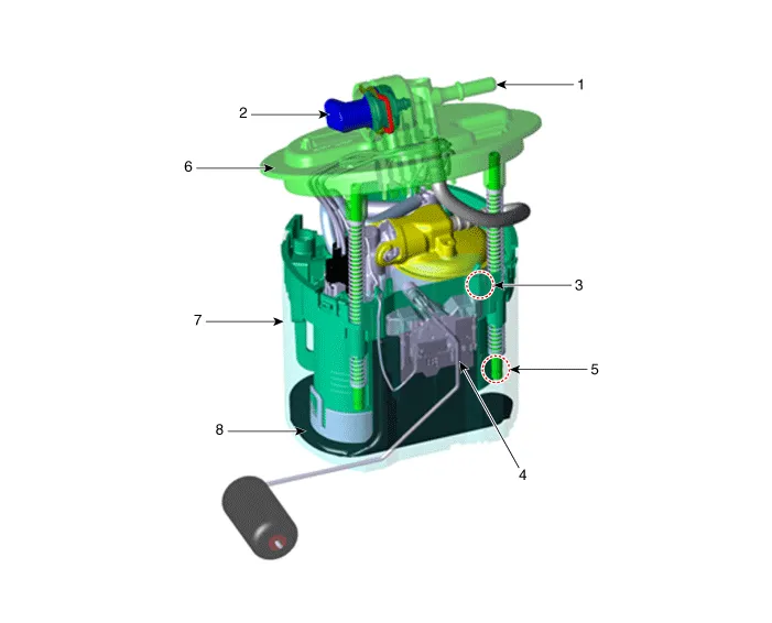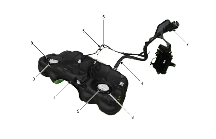 | 1. Fuel Tank 2. Low Pressure Fuel Pump 3. Sub Fuel Sender 4. Fuel Filler Hose |