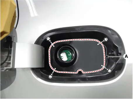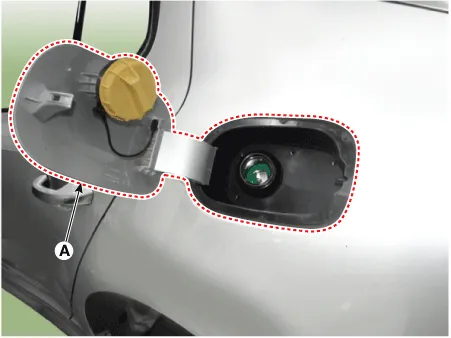 Remove the fuel filler door parking (A) after loosening mounting screws.