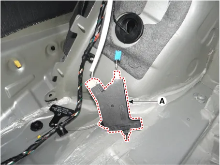 Remove the fuel filler door release actuator (A) after loosening the mounting bolts.