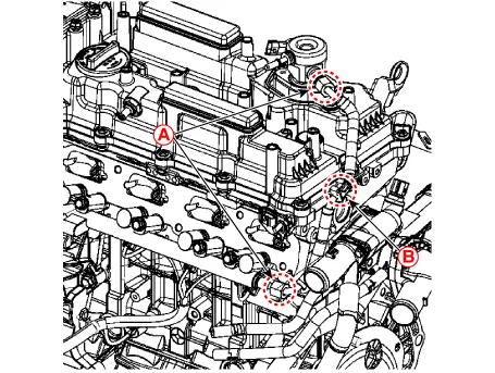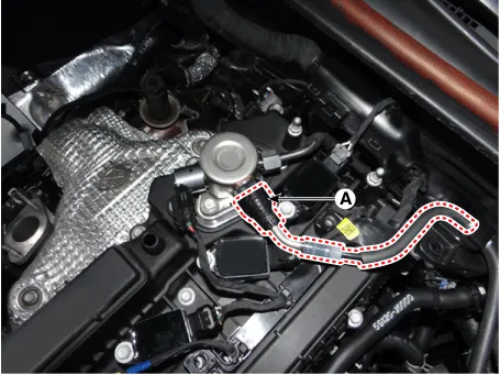 Disconnect the fuel feed tube quick-connector (A) which is connected from the high pressure fuel pump.