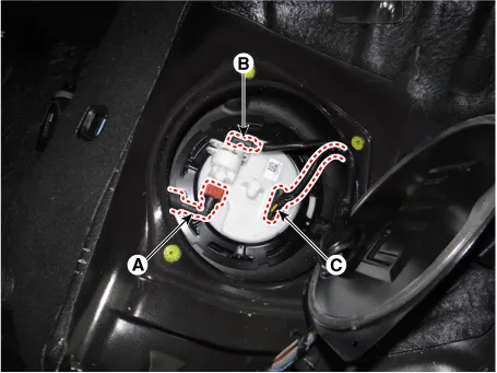 Disconnect the fuel pump connector (C).