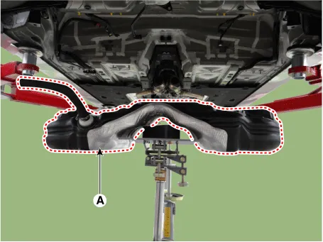 Support the fuel tank with jack (A). |