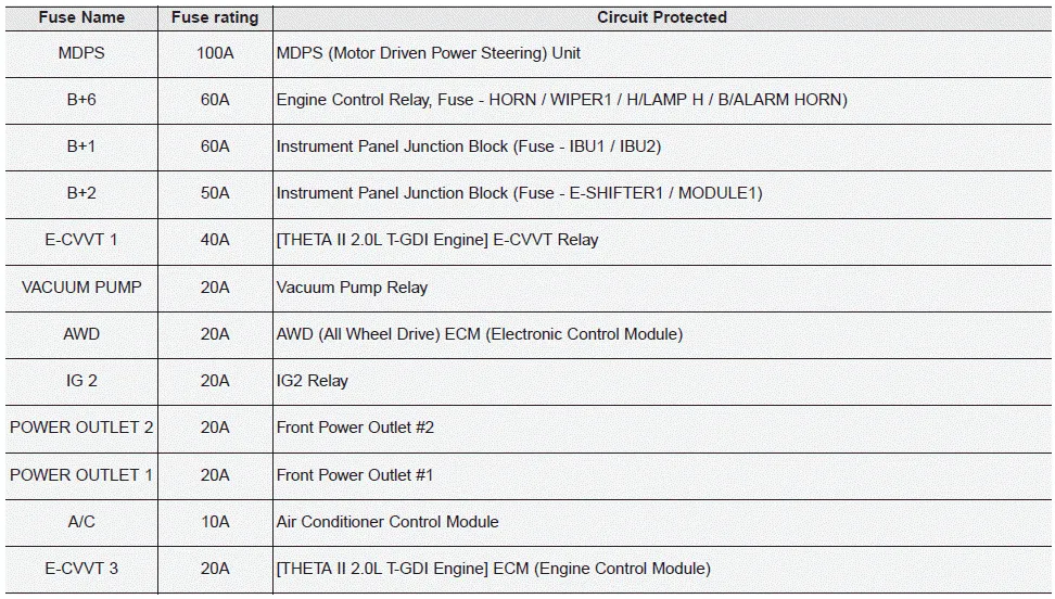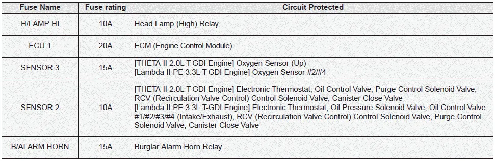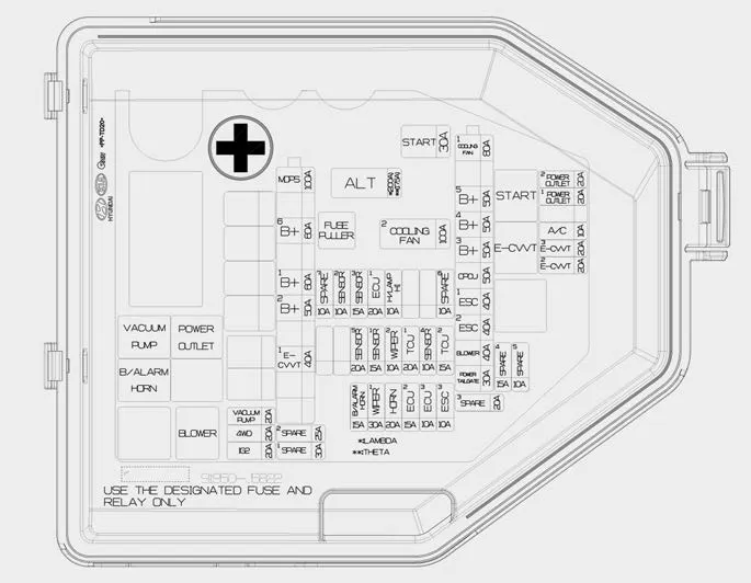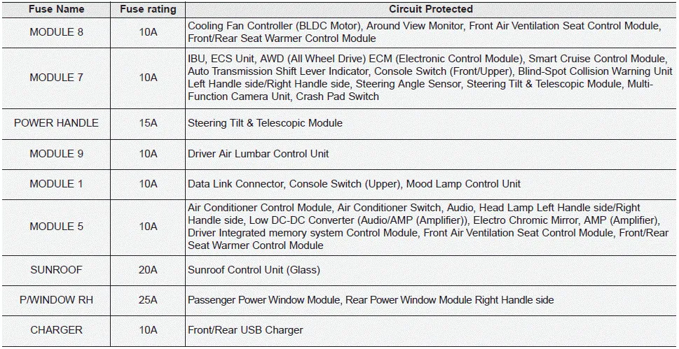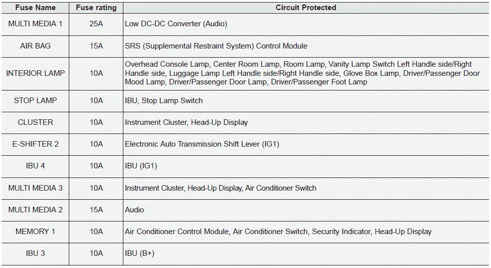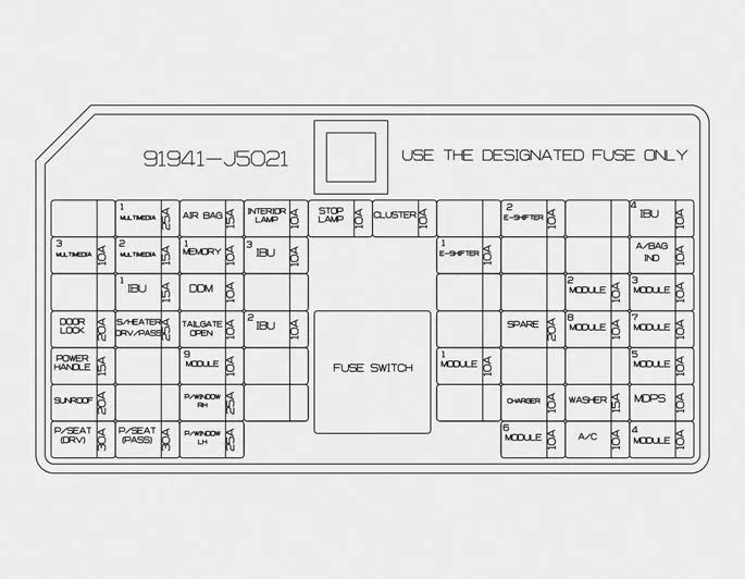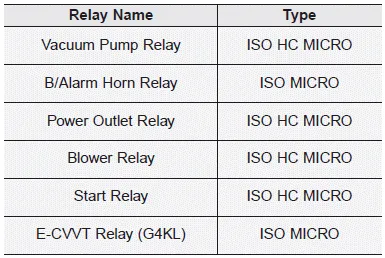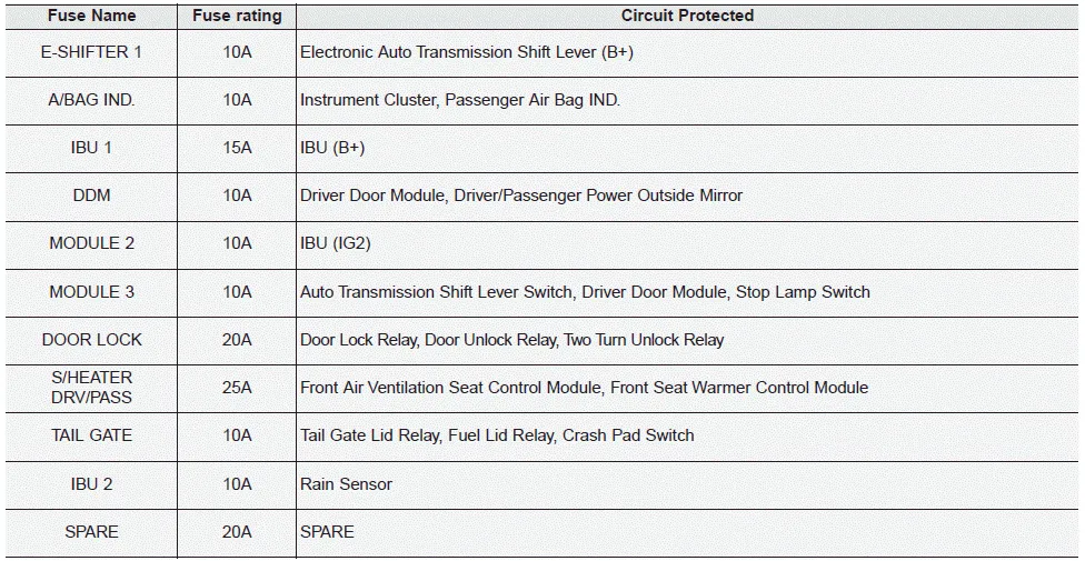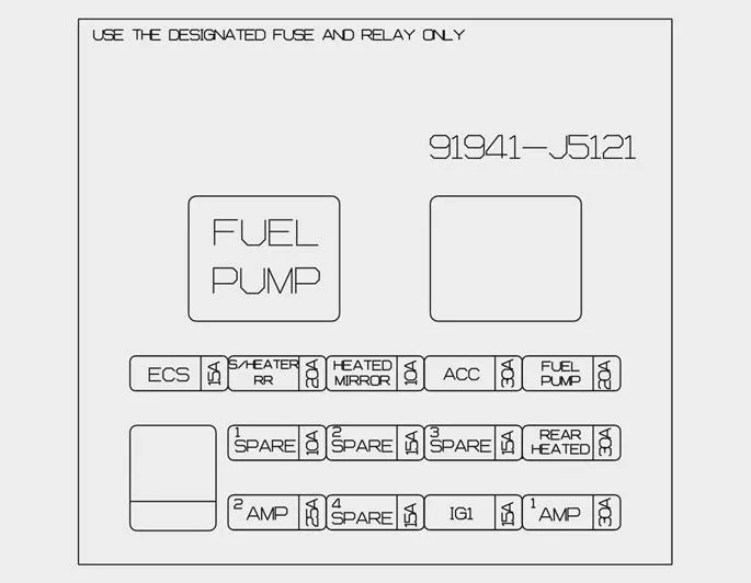 Inside the fuse/relay panel covers, you can find the fuse/relay label describing fuse/relay name and capacity.