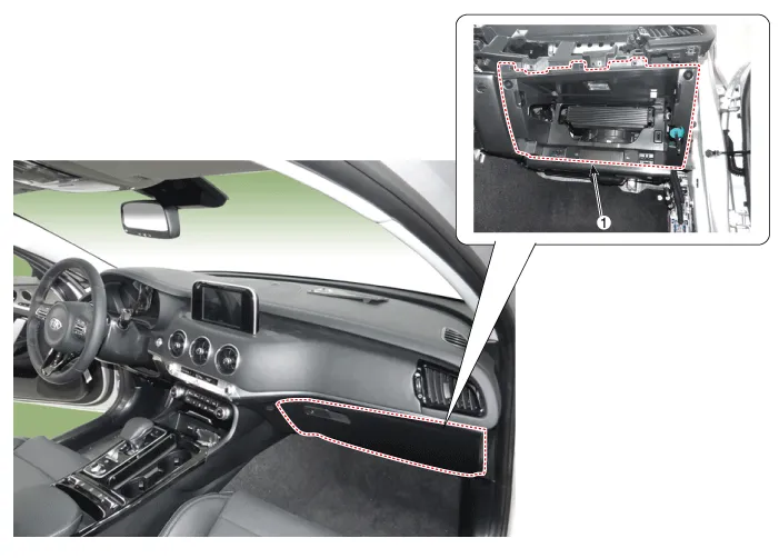 Components and components location Component Location 1. Crash pad lower panel Repair procedures Replacement Put on gloves to protect your hands. • Use a plastic panel removal tool to remove interior trim pieces without marring the surface.