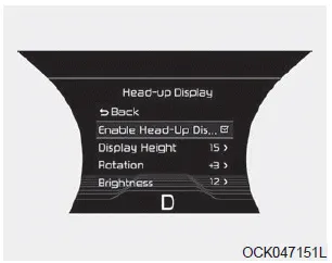 The HUD display will be activated or deactivated in user setting mode while engine is ON.