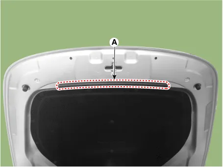 Detach the clip and then remove the hood seal weatherstrip (A).