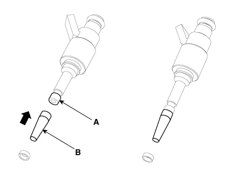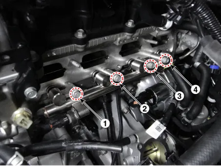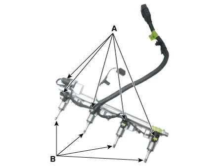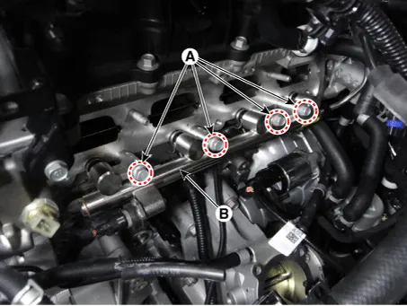 Remove the mounting bolts (A), and then remove the delivery pipe & injector