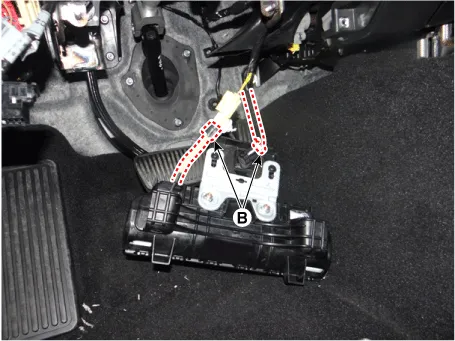 Remove the crash pad lower panel. (Refer to Body (Interior and Exterior) - "Crash Pad Lower Panel") |