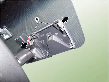 Using a screwdriver or remover, remove the mirror wiring cover (A).
