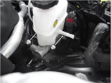 Remove the brake fluid from the master cylinder reservoir with a syringe.