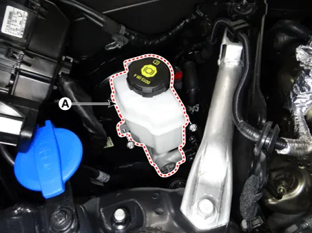 Remove the master cylinder (A) from the brake booster after loosening the mounting nuts.