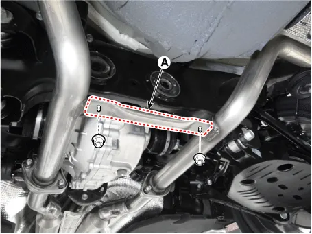 Detach the rubber hanger (A) from the center muffler. |