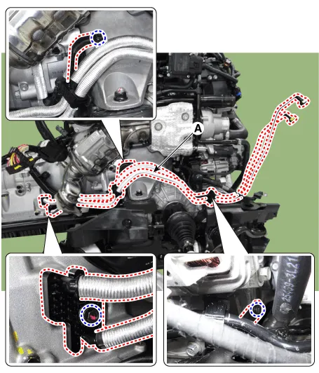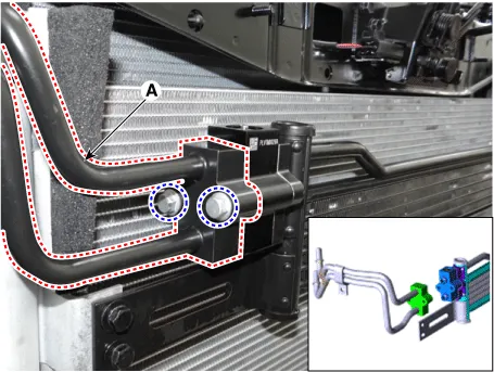 Remove the oil cooler pipe (A) after loosening the bolts.